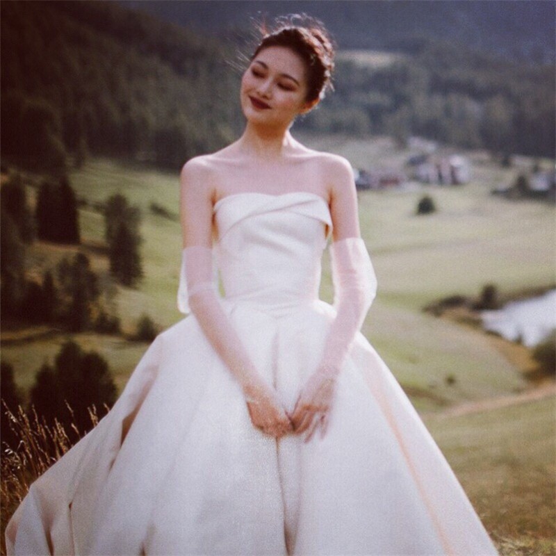 Short White Satin And Tulle Strapless Bridal Dress Promfy